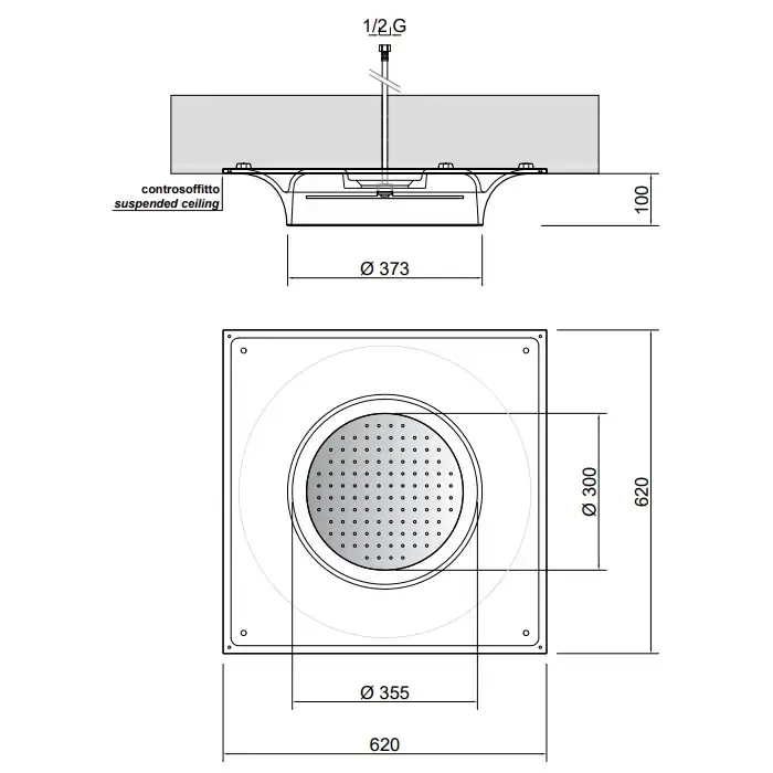 Antonio Lupi Meteo Встраиваемый верхний душ, 62х62см, цвет: нержавеющая сталь/белый