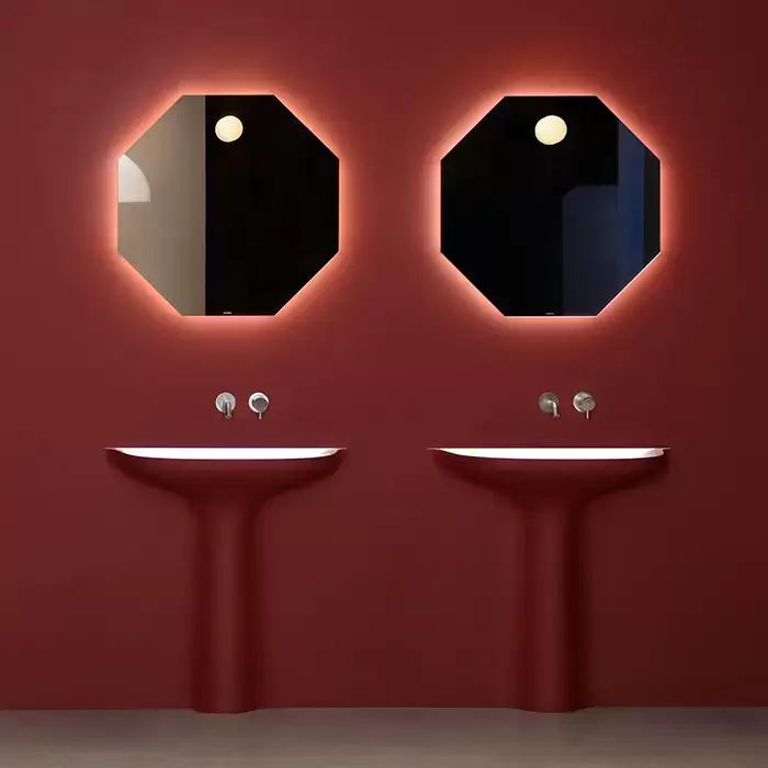Antonio Lupi MODULO Зеркало 108х108х2.5cм., на раме, с блестящей кромкой, с белой светодиодной подсветкой