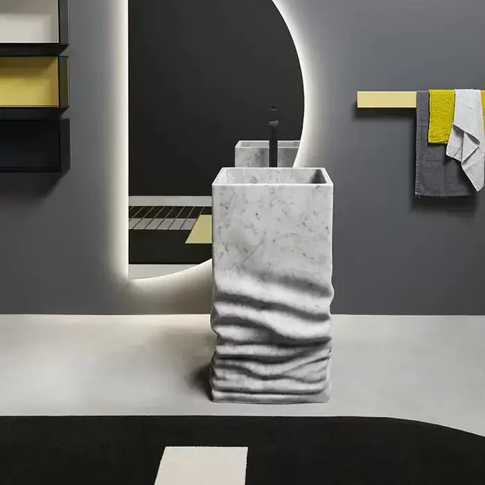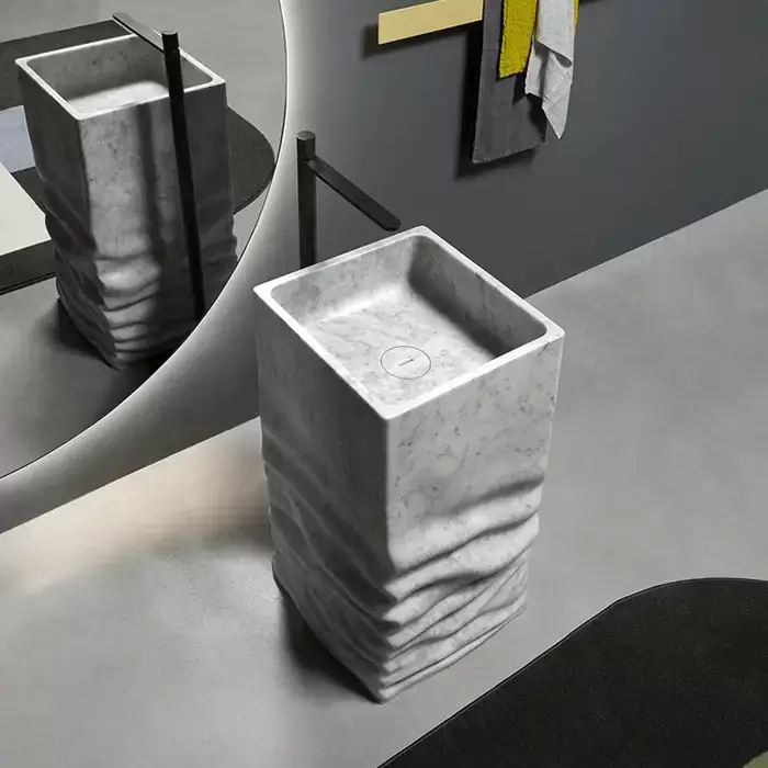 Antonio Lupi Ossimoro Раковина 45х45х85 см, без отв., слив в пол, с сифоном, донным клапаном и гибким шлангом, цвет: мрамор Carrara