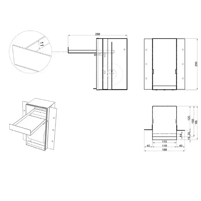 Antonio Lupi Sesamo Держатель для туалетной бумаги, встраиваемый в стену, 25х15х19.8 см, из нержавеющей стали AISI 304, отделка алюминий