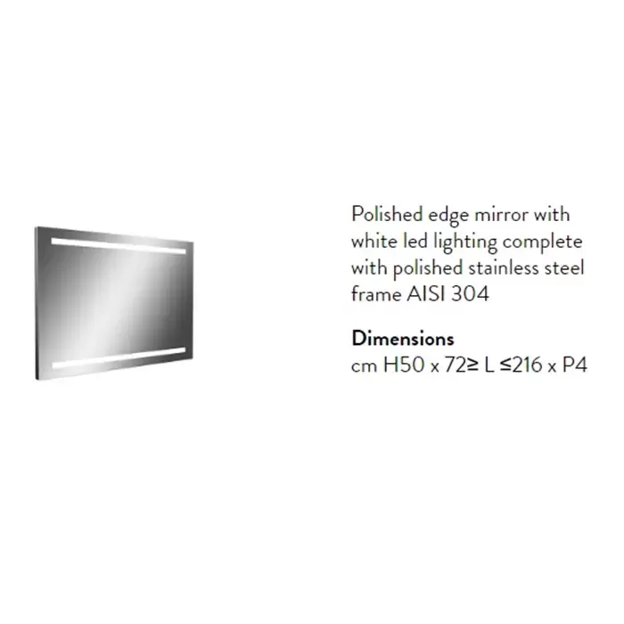 Antonio Lupi Spio Зеркало 216х75х4cм., с блестящей кромкой, с белой светодиодной подсветкой 4000K, без выключателя, на раме из полированной стали