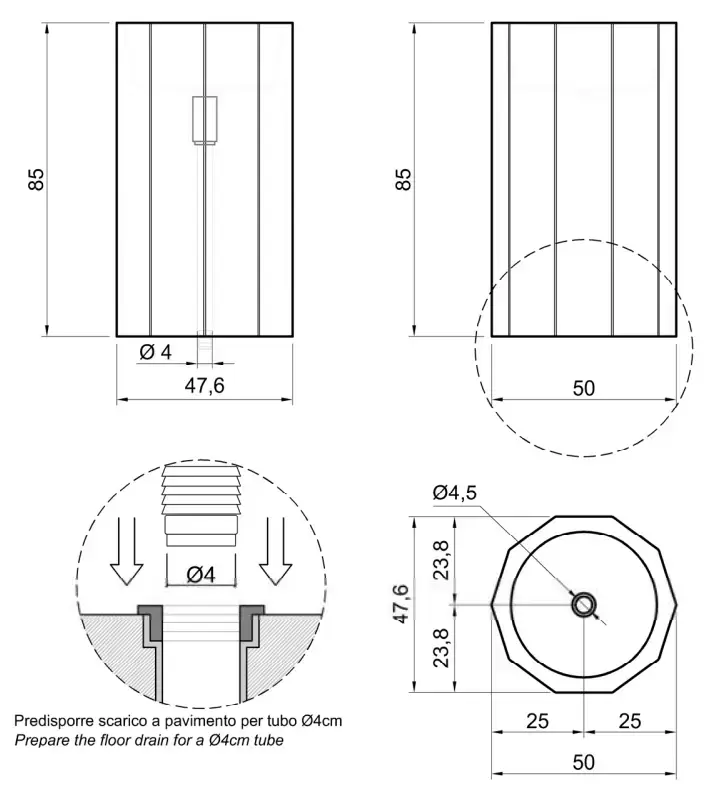 Antonio Lupi Vitreo Раковина 50х89 см, без отв., напольная, слив в пол, Cristalmood, цвет: Nebbia