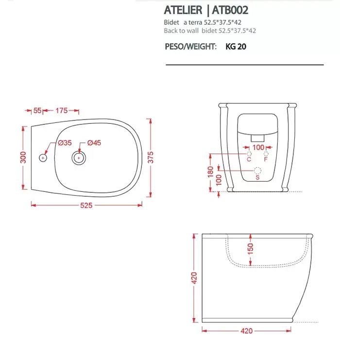 Artceram Atelier Биде напольное 52,5х37,5хh42см, с 1 отв под смеситель, цвет: белый