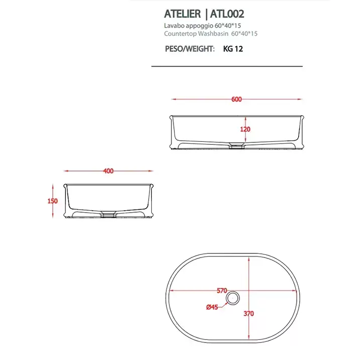 Artceram Atelier Раковина 60x40х15 см, без отв., накладная, без перелива, цвет: черный