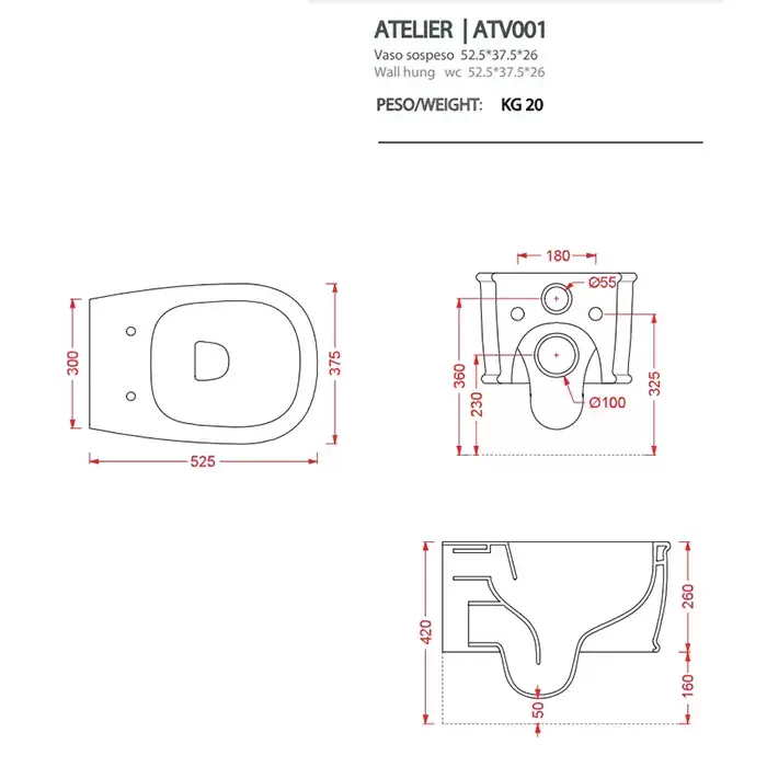 Artceram Atelier Унитаз подвесной, 52х37см, безободковый, с крепежом, цвет: белый матовый