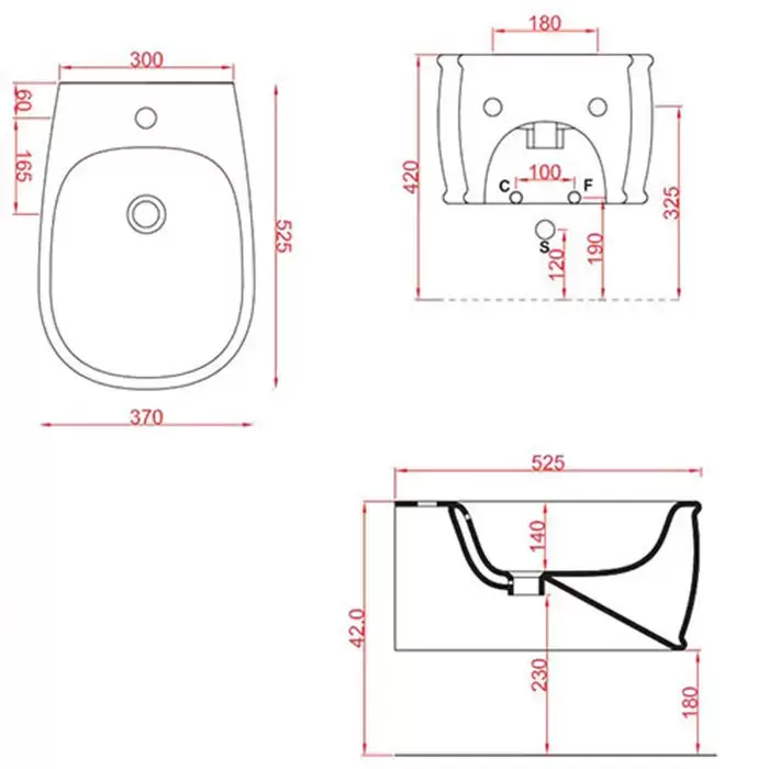 Artceram AZULEY Биде подвесное 36х52см c креплением, с 1 отв под смеситель, цвет: черный