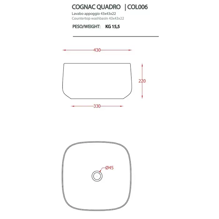 Artceram Cognac Раковина накладная Quadro 43x43 см, saniglaze, цвет: черный матовый