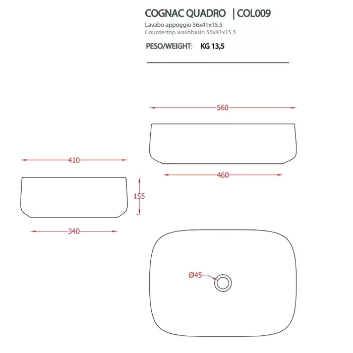 Artceram Cognac Раковина накладная Quadro 56x41 см, Saniglaze, цвет: matera