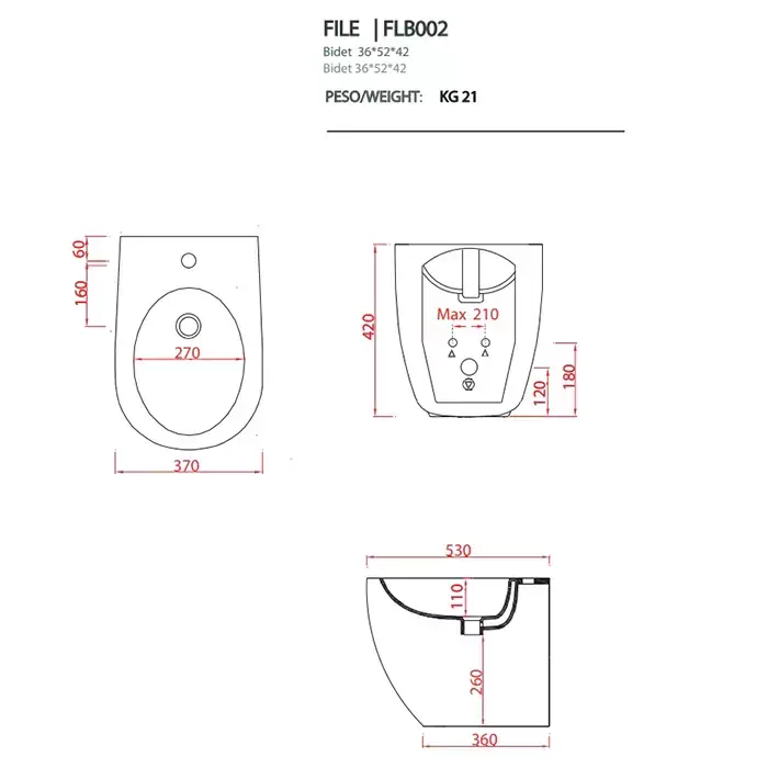 Artceram File 2.0 Биде напольное 36х52 см, 1 отверстие, цвет: cocoa