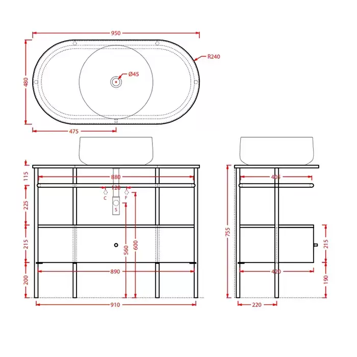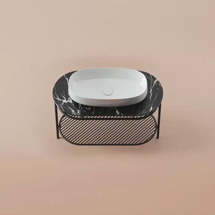 Artceram Flair 4.0 Консоль металлическая с раковиной 95x48хh75см., напольная, с полочкой и мраморной столешницей, цвет: черный матовый/белый