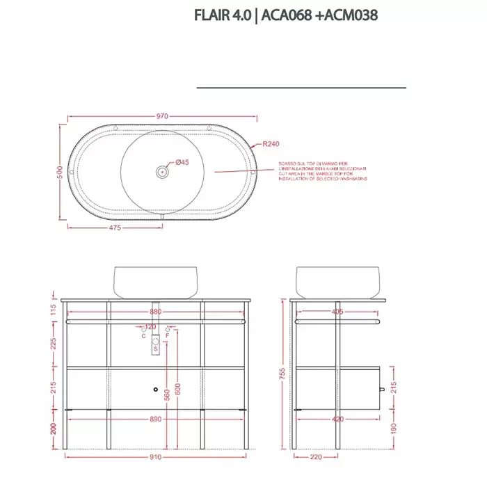 Artceram Flair 4.0 Консоль металлическая с раковиной 95x48хh75см., напольная, с выдвижным ящиком и мраморной столешницей, цвет: белый матовый/verde salvia