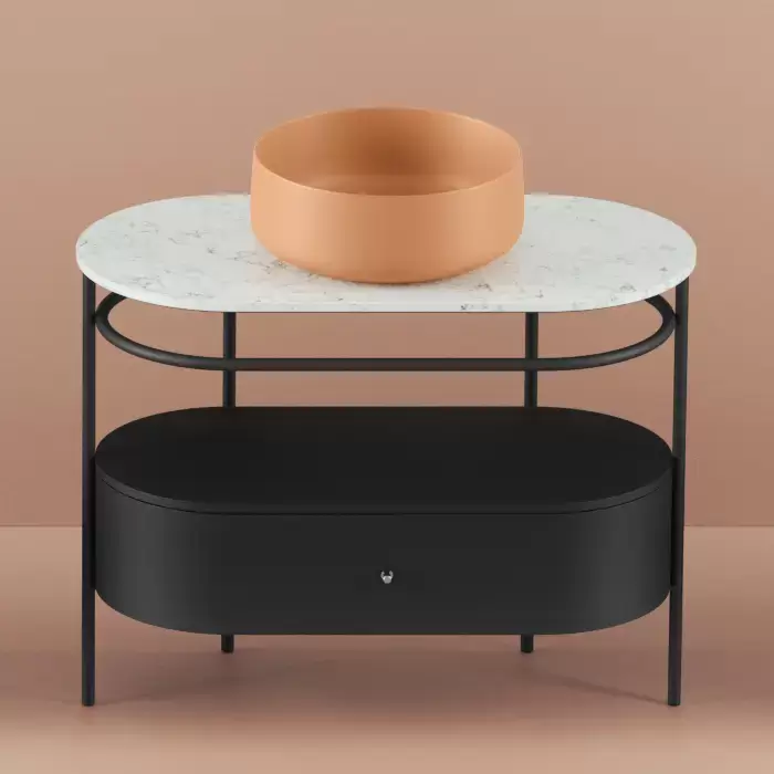 Artceram Flair 4.0 Консоль металлическая с раковиной 95x48хh75см., напольная, с 1 ящиком и мраморной столешницей, цвет: черный матовый/orange cameo