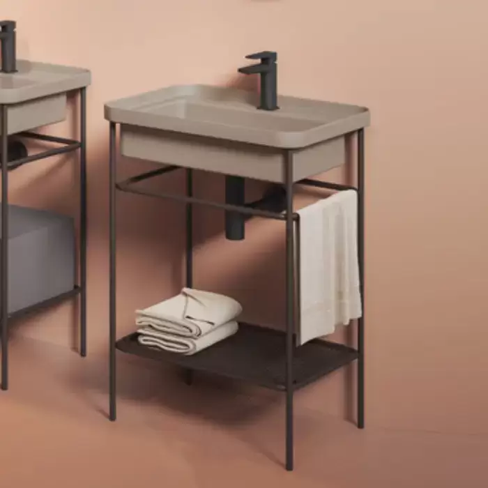 Artceram Fuori Scala Консоль металлическая с раковиной, 57х42.5х83см., напольная, с полочкой, подвесная, цвет: moka/matera