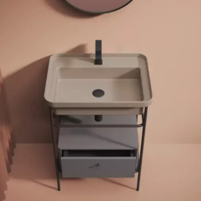 Artceram Fuori Scala Консоль металлическая с раковиной, 57х42.5х83см., напольная, с выдвижным ящиком, цвет: moka/matera