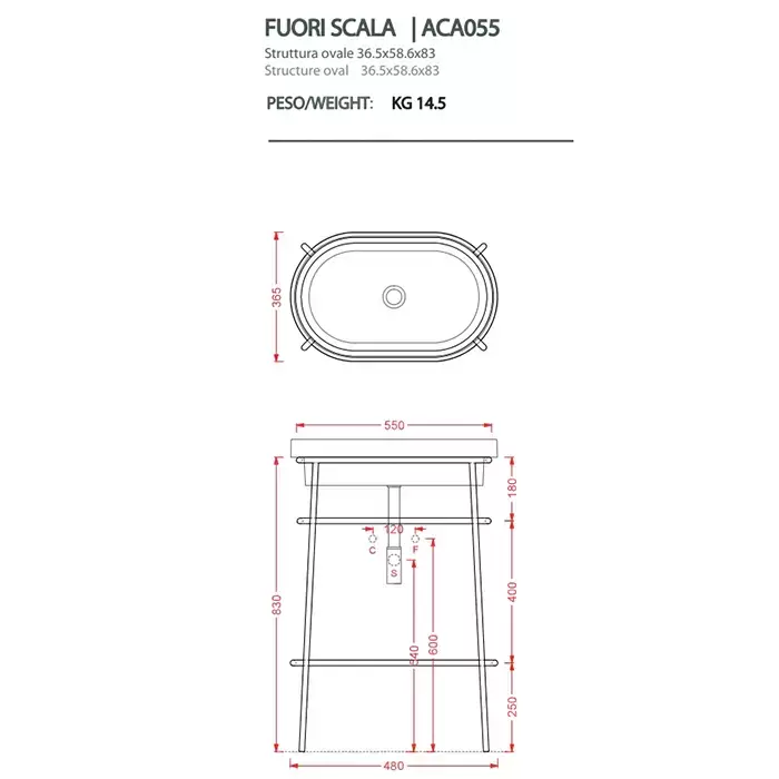 Artceram FUORI SCALA Металическая структура 36.5x58.6хh83см с раковиной без отв под смеситель, Fuori Scala ovale 59, напольная, цвет: черный матовый/белый матовый