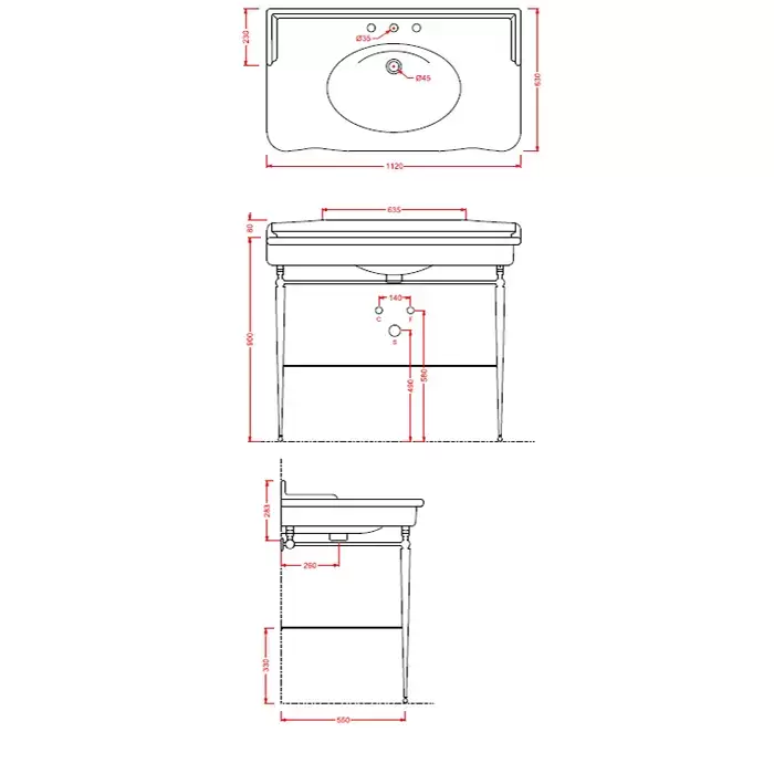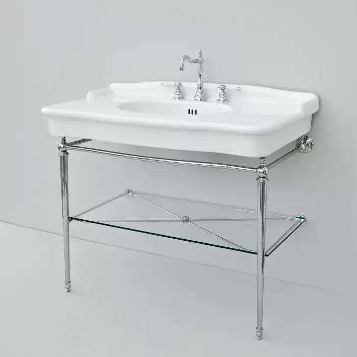 Artceram HERMITAGE Металлическая структура с раковиной 112х63см, на 3 отв., со стеклянной полкой, напольная, цвет хром,
