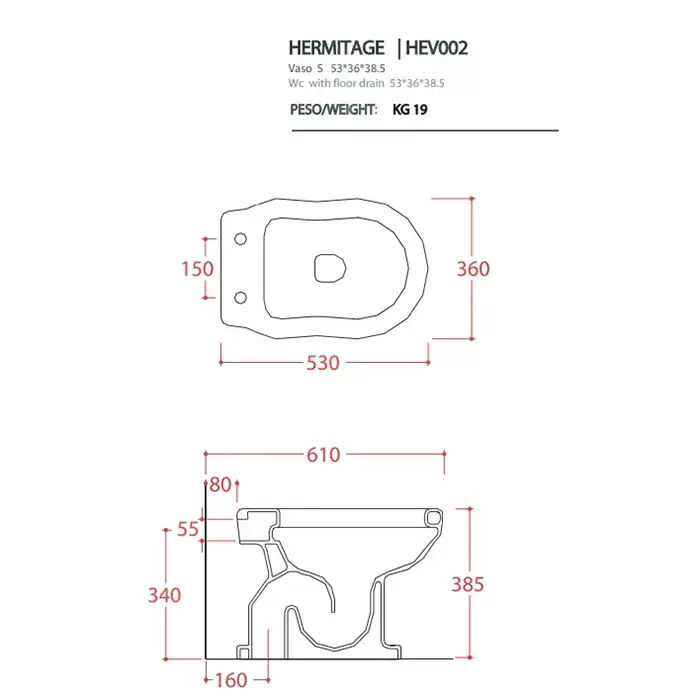 Artceram HERMITAGE Унитаз приставной слив в пол, 36х55см, с крепежом в комплекте, цвет: белый