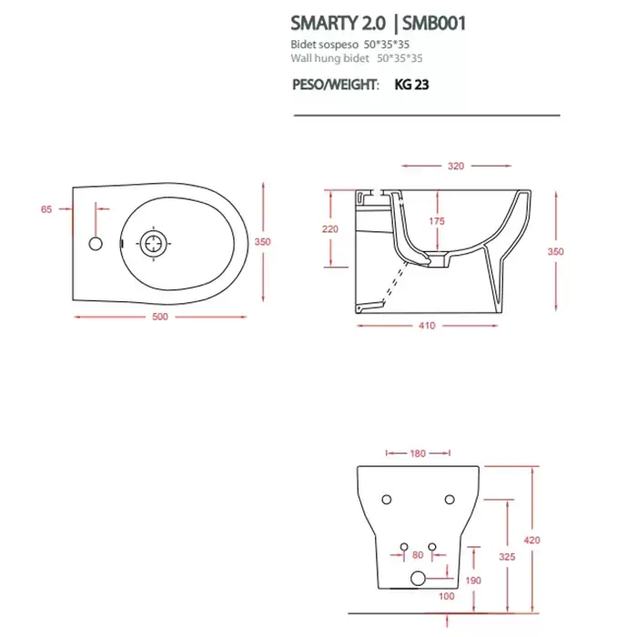 ARTCERAM/HIDRA SMARTY Биде подвесное 35х50 см, с 1 отв под смеситель, цвет: белый