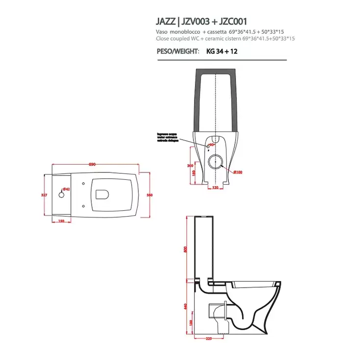 Artceram JAZZ унитаз моноблок 69х36см слив универсальный, цвет: белый
