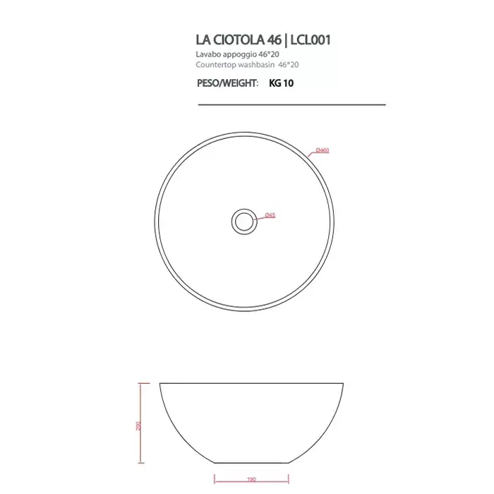 ARTceram LA CIOTOLA Раковина 46 см, накладная, без отв., без слива-перелива, цвет: белый