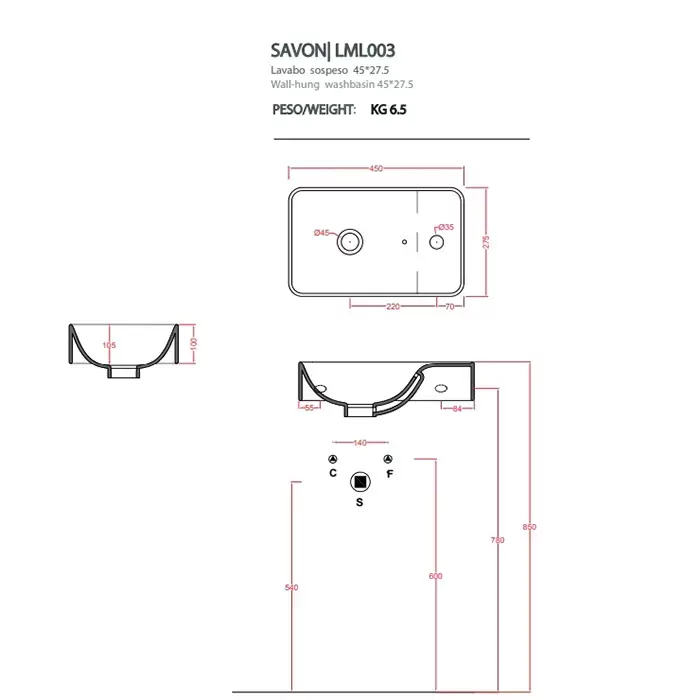 Artceram Lavamani Раковина подвесная 27x45 см, 1 отверстие, цвет: белый матовый