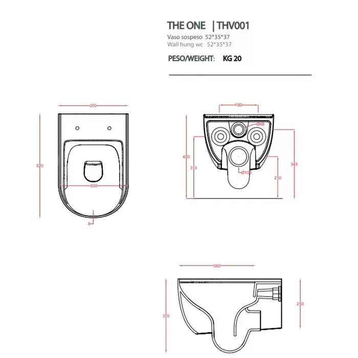 Artceram THE ONE Унитаз подвесной безободковый , 52х35см, с креплениями, цвет: rosso corallo