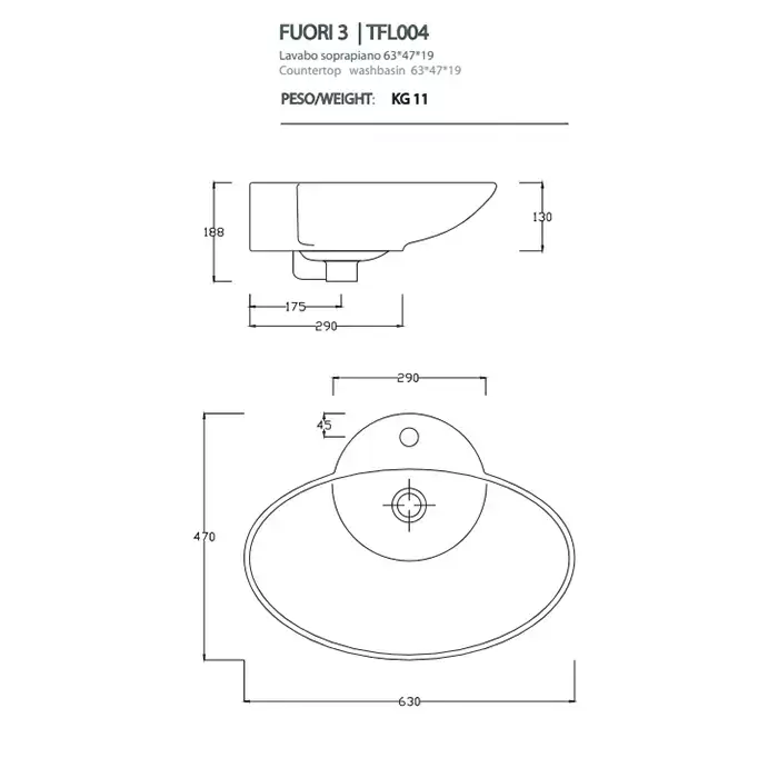 Artceram WASHBASINS FUORI 3 Раковина 63х47 см, 1 отв., накладная, цвет: белый
