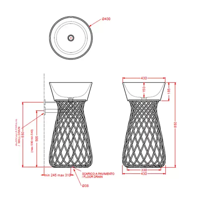Artceram WIRE Раковина 43 см, без отв., цвет: черный глянцевый