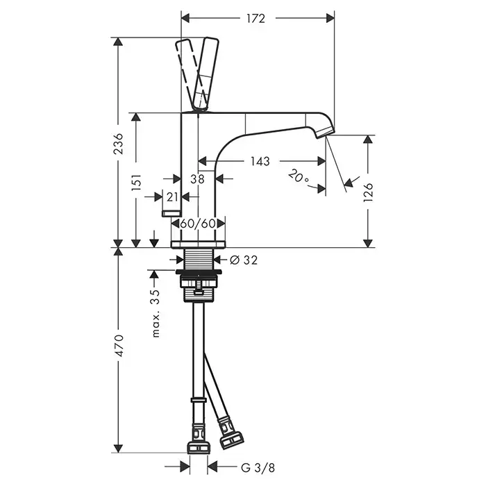 Axor Citterio E Смеситель для раковины 125, на 1 отв., с донным клапаном, цвет: сталь