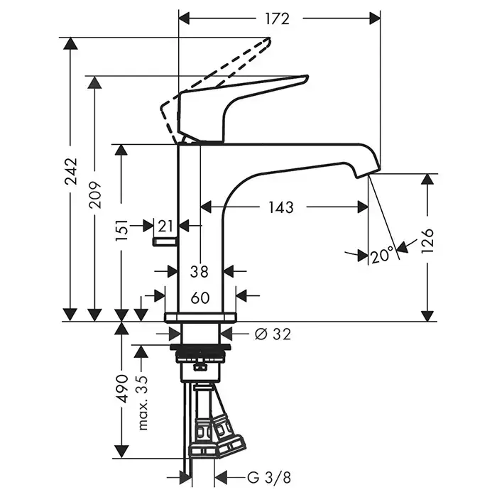 Axor Citterio E Смеситель для раковины 125, на 1 отв., с донным клапаном, цвет: полированный черный хром