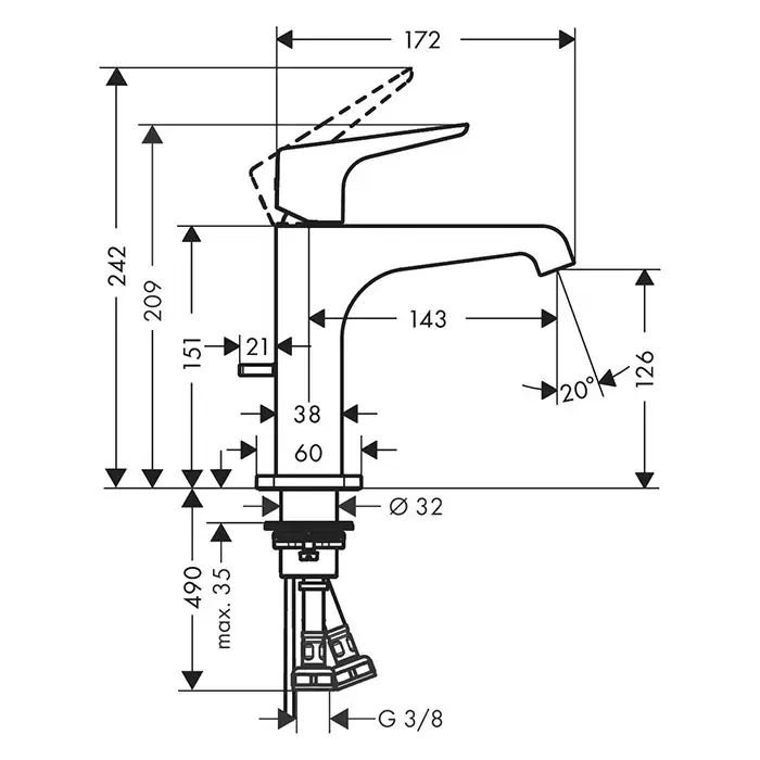 Axor Citterio E Смеситель для раковины, на 1 отв., с донным клапаном, цвет: черный хром