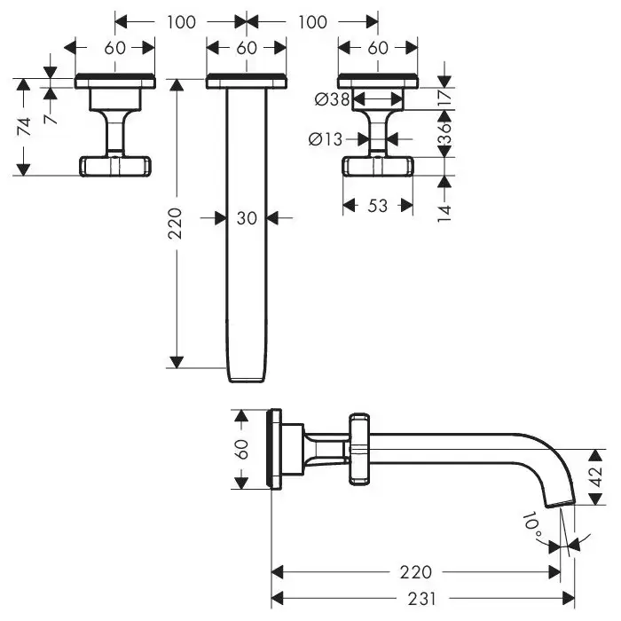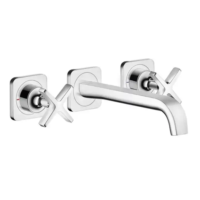 Axor Citterio E, Смеситель для раковины, на 3 отверстия, с розетками и изливом 220 мм, настенный монтаж, СМ, цвет: хром