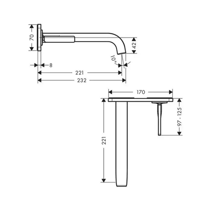 Axor Citterio E, Смеситель для раковины,однорычажный, с панелью иизливом 220 мм, настенный монтаж, внешняя часть, цвет: хром