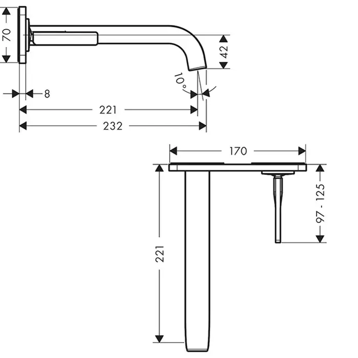 Axor Citterio E Смеситель для раковины, встраиваемый, излив: 22.1см., с панелью, цвет: сталь