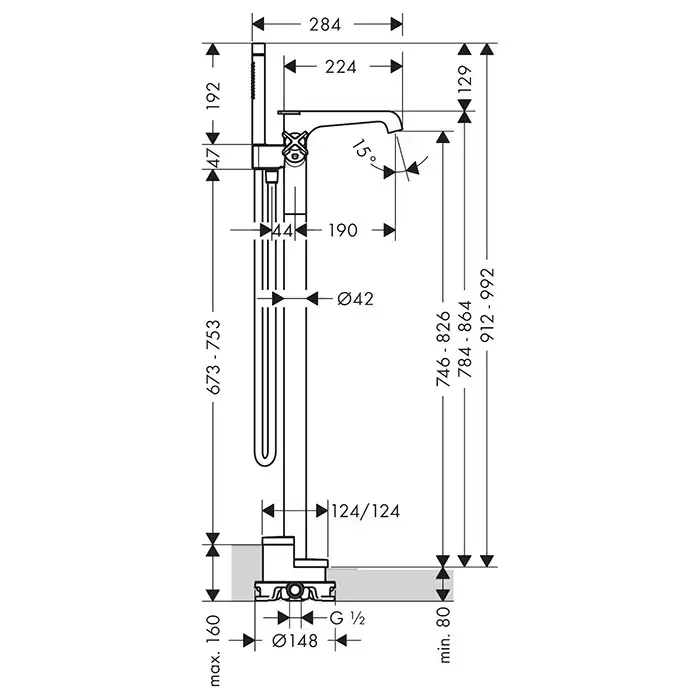 Axor Citterio E Смеситель для ванны, напольный, термостатический, с ручным душем, внешняя часть, цвет: хром