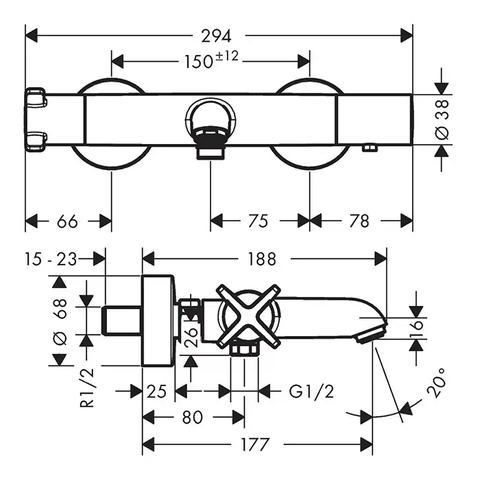 Axor Citterio E Смеситель для ванны, термостатический, настенный, цвет: шлифованное красное золото
