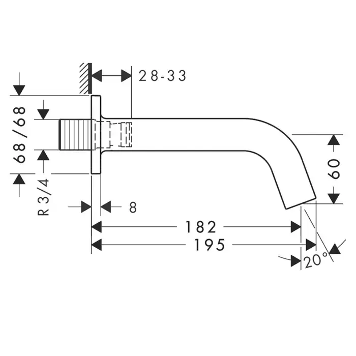 Axor Citterio M Излив для ванны, 182мм, настенный, ¾’, цвет: хром