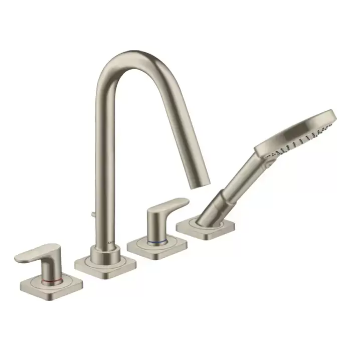 Axor Citterio M Смеситель для ванны, на 4 отв., с ручным душем, цвет: шлифованный никель