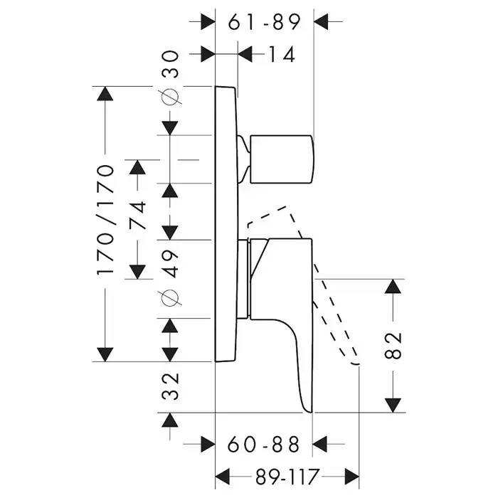 Axor Citterio M Смеситель для ванны, встраиваемый, с переключателем на 2 потока, цвет: шлифованный черный хром