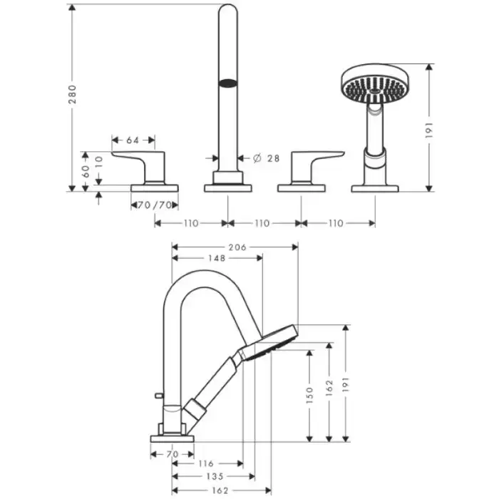 Axor Citterio M, Смеситель на край ванны, на 4 отверстия, с рычаговыми рукоятками, внешняя часть, цвет: хром