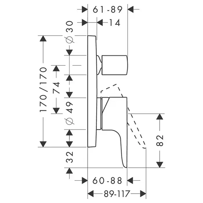 Axor Citterio M Встраиваемый смеситель для ванны однорычажный, внешняя часть, цвет: хром
