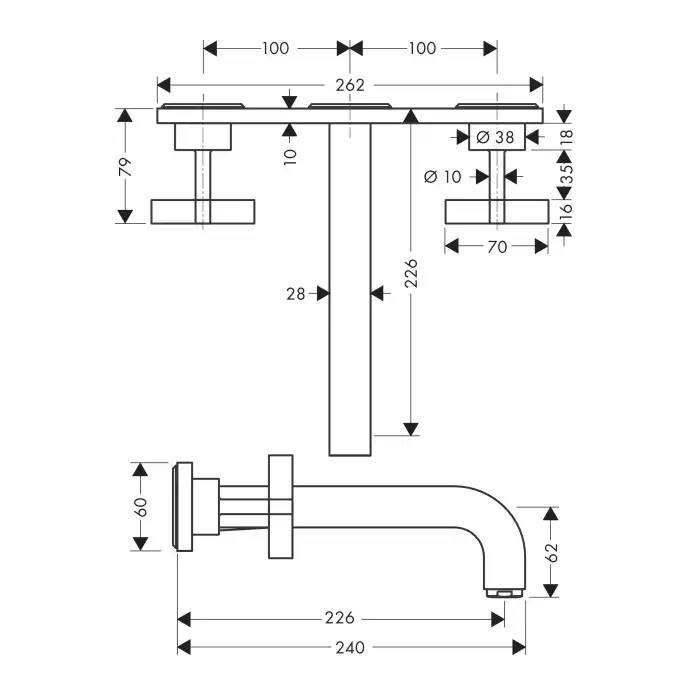 Axor Citterio Смеситель для раковины, настенный, без донного клапана, цвет: шлифованное красное золото