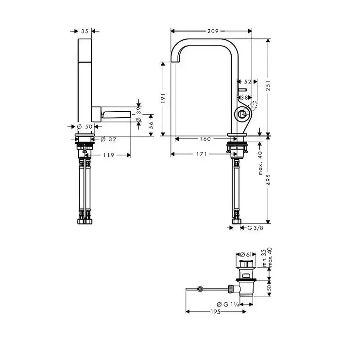 Axor Citterio Смеситель для раковины, однорычажный, с высоким изливом, цвет: хром