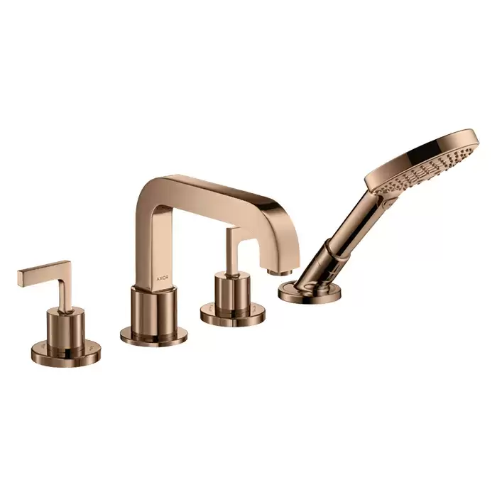 Axor Citterio Смеситель на борт ванны, на 4 отв., ручка: рычаг, с ручным душем, цвет: полированное красное золото