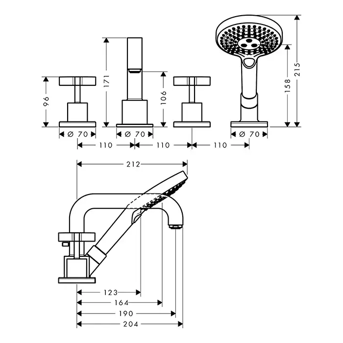 Axor Citterio Смеситель на борт ванны, на 4 отв., с ручным душем, цвет: шлифованный черный хром