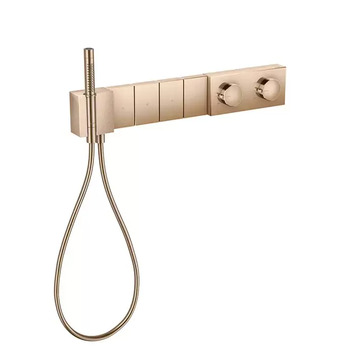 Axor Edge Смеситель для душа 610/100, встраиваемый, термостат, на 4 источника, с ручным душем, алмазная огранка, внешняя часть, цвет: красное золото