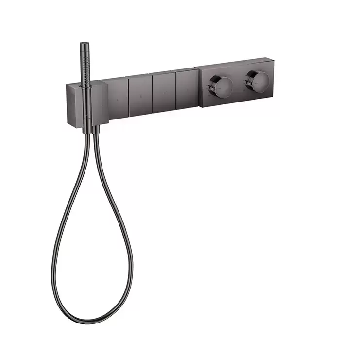 Axor Edge Смеситель для душа 610/100, встраиваемый, термостат, на 4 источника, с ручным душем, алмазная огранка, внешняя часть, цвет: черный