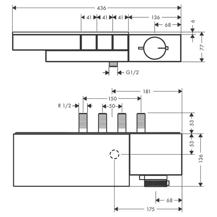 Axor Edge Смеситель для душа, термостат, на 3 источника, алмазная огранка, цвет: черный