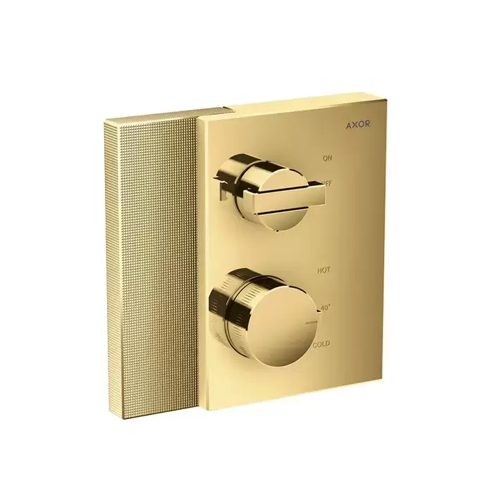 Axor Edge Смеситель для душа, встраиваемый, термостат, на 1 источник, с запорным вентилем, алмазная огранка, внешняя часть, цвет: золото