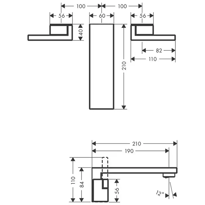 Axor Edge Смеситель для раковины, на 3 отв., с донным клапаном push/open, излив 190мм, алмазная огранка, цвет: черный